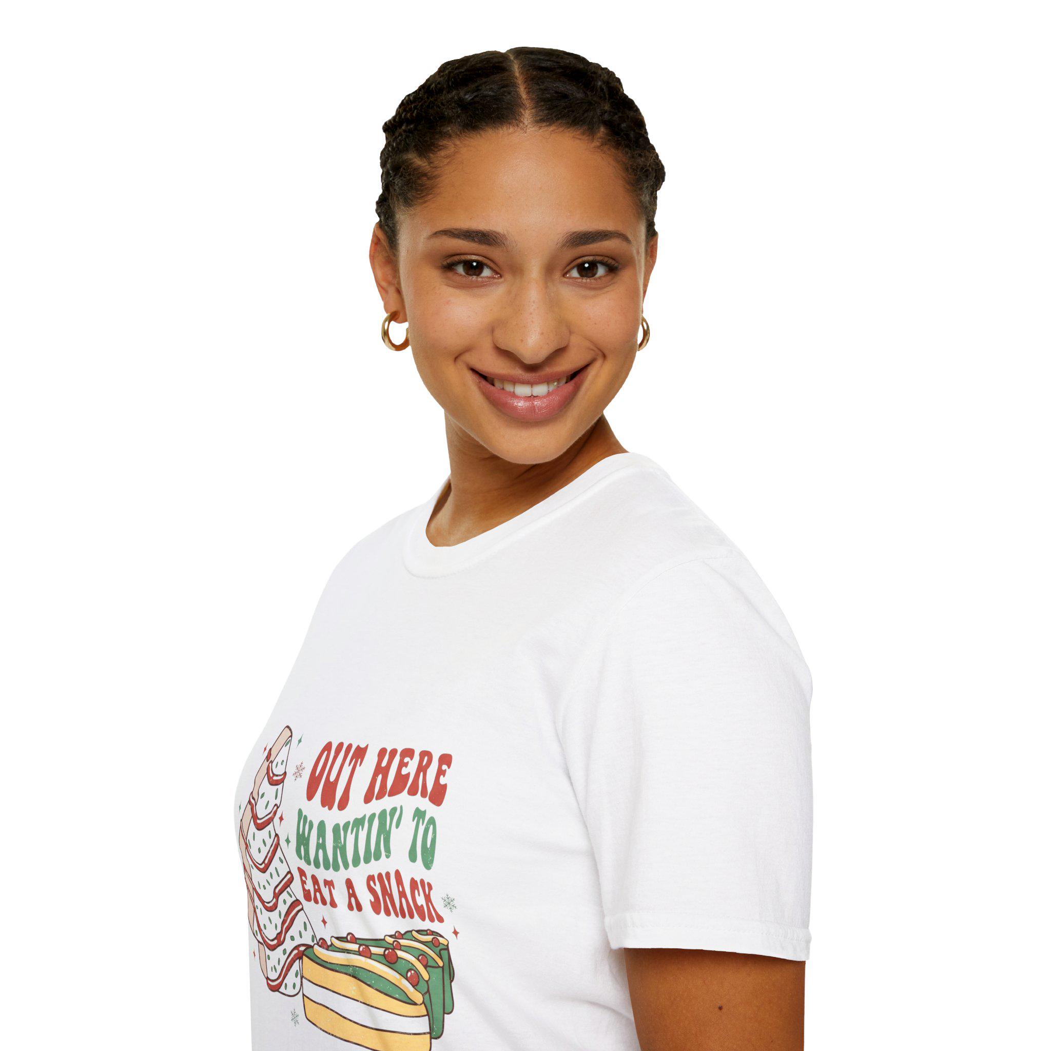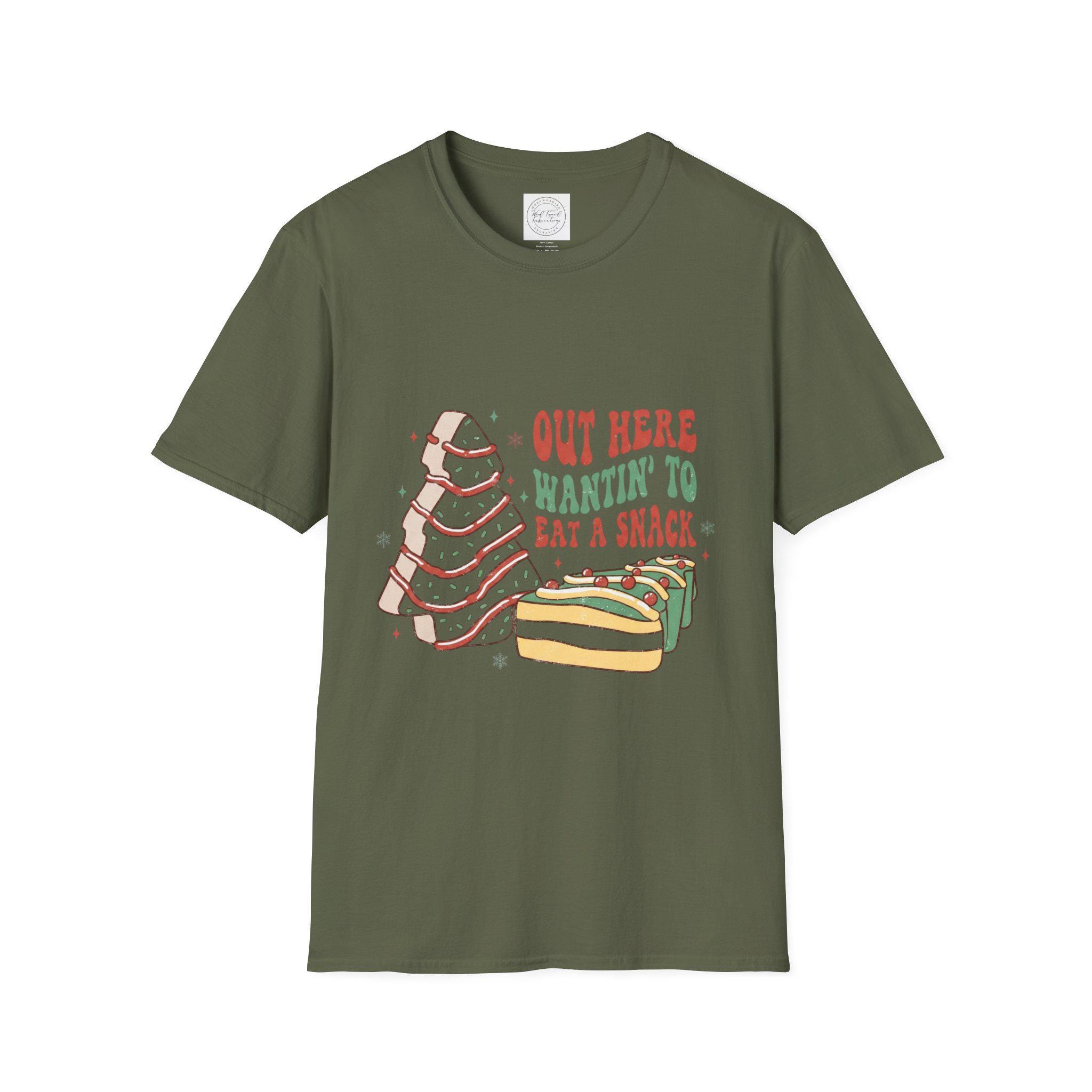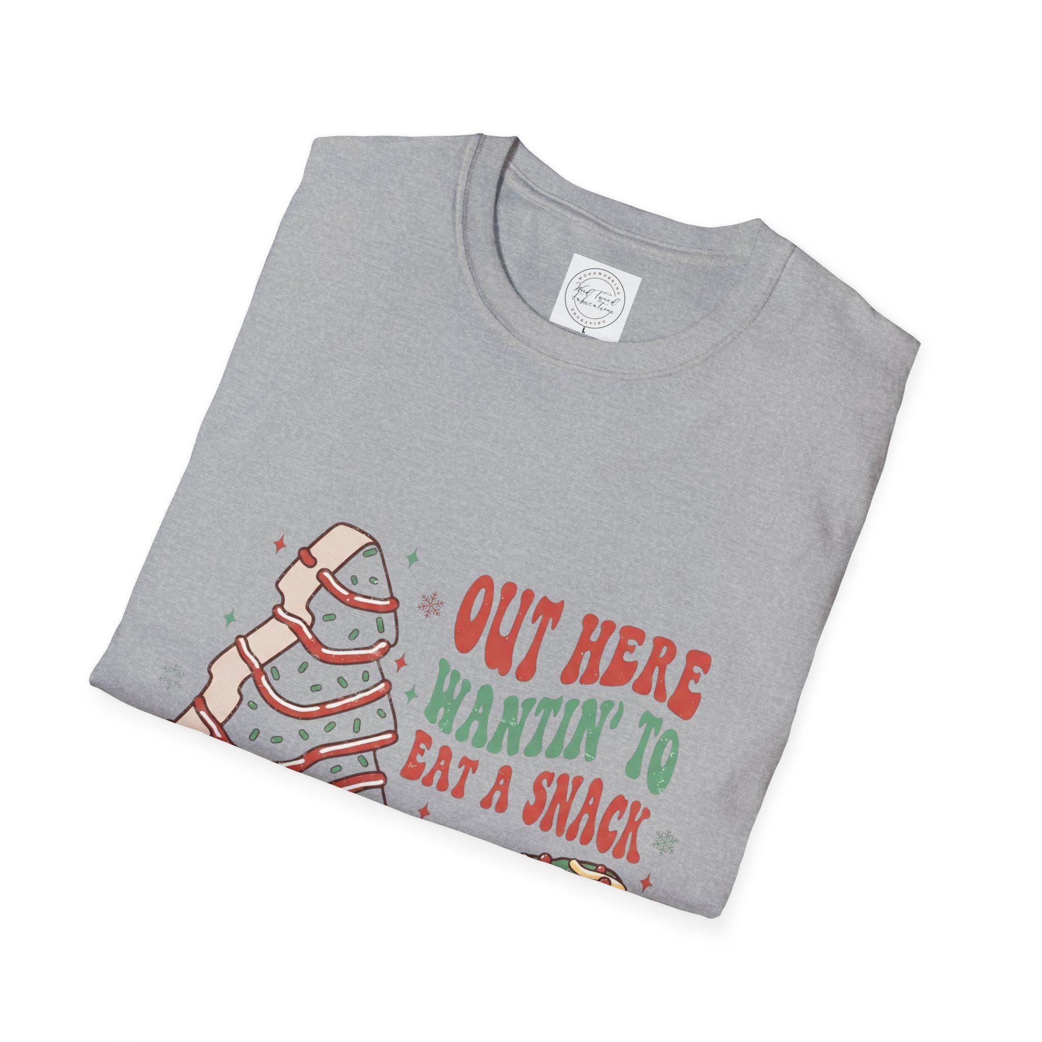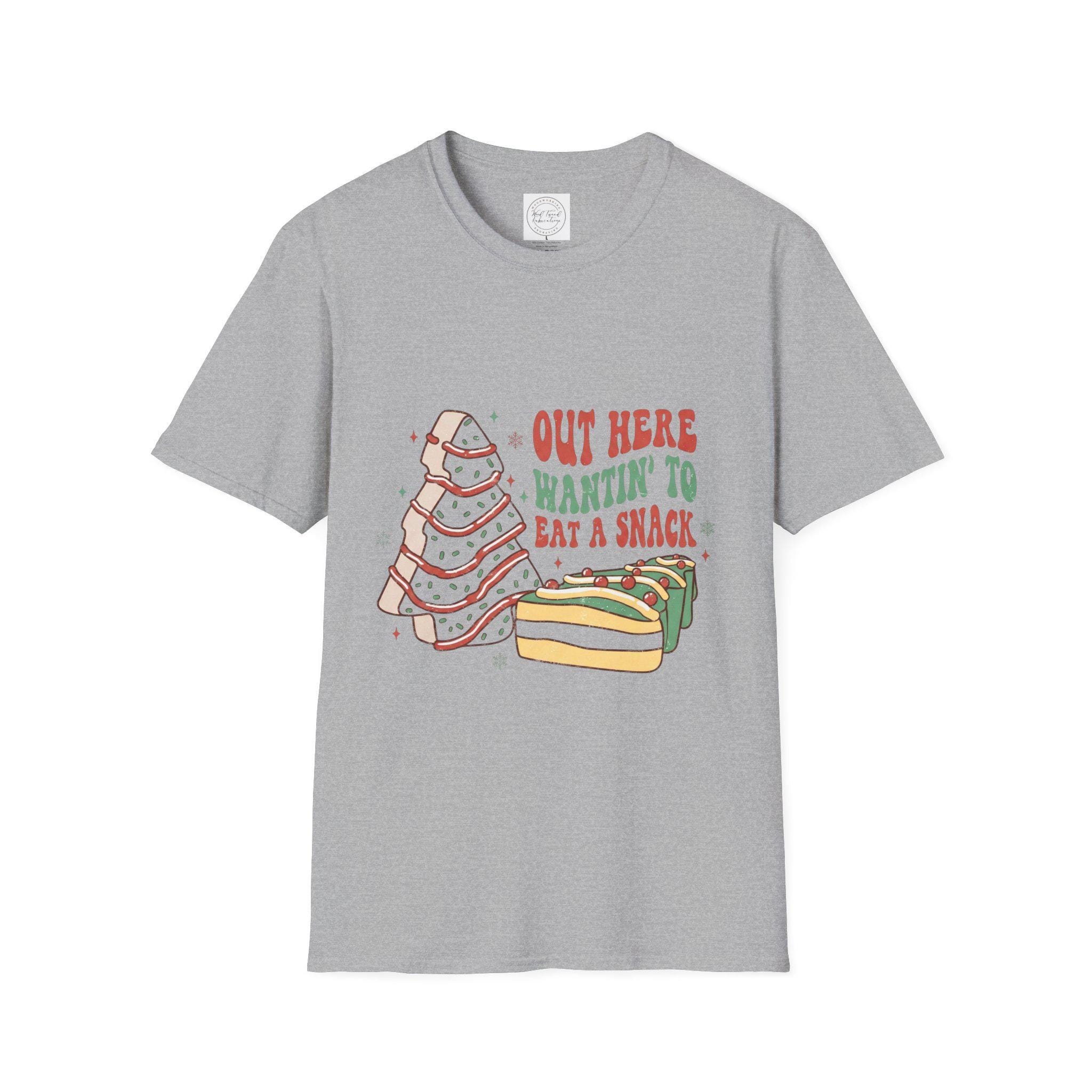 This lightweight cotton tee brings playful comfort to everyday wear. A hand-drawn sandwich stack and warm lettering read “Out here wantin’ to eat a snack,” giving the shirt a cozy, slightly silly vibe that feels like a laugh with friends at a picnic or a late-night snack run. The soft, smooth fabric sits lightly on the skin and holds detailed prints well, so the illustration’s subtle colors and linework stay crisp. Wear it on relaxed days at home, casual outings, or layered under a flannel for a laid-back, food-loving look that sparks smiles and conversation.